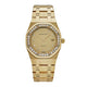 The Royal Oak Offshore Selfwinding Chronograph 26238BC.OO.2000BC.01 is a limited edition of 76 pieces marvel in 18k yellow gold. With a 42mm case offering 100m water resistance, the yellow gold dial features vertical satin-finishing and luminescent-coated Royal Oak hands.  For versatility, an additional black rubber strap is included, allowing the wearer to transition seamlessly between elegance and sportiness.