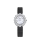 13A393-5106 Chopard  This Watch comes with 30 mm 18k rose gold case. Fixed 18k rose gold bezel set with diamonds. The total weight of the gems is 4.81 carats. Textured mother-of-pearl dial. 12 diamond hour markers (0.06 ct). Rose gold leaf-shaped hour hands. The watch performs following functions: hours, minutes. Hand-wound mechanical movement. 18 Jewels....