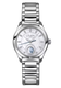 Mother-of-pearl "Shimmering White" dial and appliques with 20 brilliant-cut diamonds (total approx. 0.052 ct. TW vvs). Stainless steel  leaf-shaped hour hands. Central second hand. Moon phase indicator is located at 6 o'clock position. This watch is powered by the self-winding Calibre 35-14 movement and boasts a power reserve of approximately 60 hours, ensuring precision and reliability.