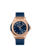 591.OX.8980.RX Hublot  This watch has a 29 mm polished 18K King Gold case. Fixed polished 18K King Gold bezel is secured with 6 screws. Green dial. Gold hour markers. Gold hour hands. Central second hand. The date window is located at the 3 o'clock position. The watch performs following functions: hours, minutes, seconds, date. Quartz movement is powered by a ?alibre HUB2915. Power reserve approximately 2 years. Sapphire crystal protects front side of the watch. Green rubber strap with deployant clasp buckle. This model is water-resistant up to 50 m.