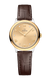 The PVD Moonshine™ Gold dial features a sun-brushed finish. The display is distinguished by yellow gold-plated hands, as well as alternating Roman numerals and diamond markers.