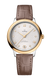 The PVD Moonshine™ Gold dial features a sun-brushed finish. The display is distinguished by yellow gold-plated hands, as well as alternating Roman numerals and cabochon indexes.