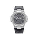 This Patek Philippe Aquanaut 'Travel Time' is designed in a 40mm stainless steel case featuring a black embossed dial with luminous white numerals. It is protected by a sapphire-crystal case back and housed on a black rubber bracelet and Aquanaut fold-over clasp. Complications include dual time zones with day/night indicators,...