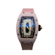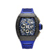 The Richard Mille RM 30-01 is crafted in a 42mm x 49.9mm ceramic case, skeleton dial, and styled on a rubber strap. Beyond its captivating exterior, this timepiece houses a high-performance automatic Caliber RMAR2, meticulously engineered to deliver unparalleled precision and reliability. The Declutchable Rotor is a remarkable feature that enhances the winding system and prevents excessive tension, ensuring the longevity of the movement. At 2 o'clock is the function selector, which allows you to select timekeeping settings providing the wearer with more control.