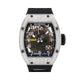 This Richard Mille RM 74-01 is crafted in a 52.63 x 34.40mm grey Cermet case, a material that merges the lightness of titanium with the durability of ceramic. It consists of a metallic zirconium matrix associated with high-performance ceramic that gives the material its singular grey color. The watch comes on a white rubber strap and comes with an addition red strap.