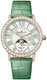 3662A 2954 55B Blancpain This watch comes with 34.9 mm 18K red gold case set with diamonds. Fixed 18K red gold bezel set with diamonds. Bezel & lugs set with 59 diamonds weighing more than 2 carats. Mother of pearl dial with dual rose gold dial accent-rings set with 70 diamonds. Red gold leaf-shaped hour hands. Turquoise...
