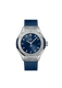 591.NX.1470.RX Hublot  This watch has a 29 mm polished titanium case. Fixed polished titanium bezel is secured with 6 screws. Black dial. Silvery hour markers. Silvery hour hands. Central second hand. The date window is located at the 3 o'clock position. The watch performs following functions: hours, minutes, seconds, date. Quartz movement is powered by a ?alibre HUB2915. Power reserve approximately 2 Years. Sapphire crystal protects front side of the watch. Black Rubber strap with deployant clasp buckle. This model is water-resistant up to 50 m.